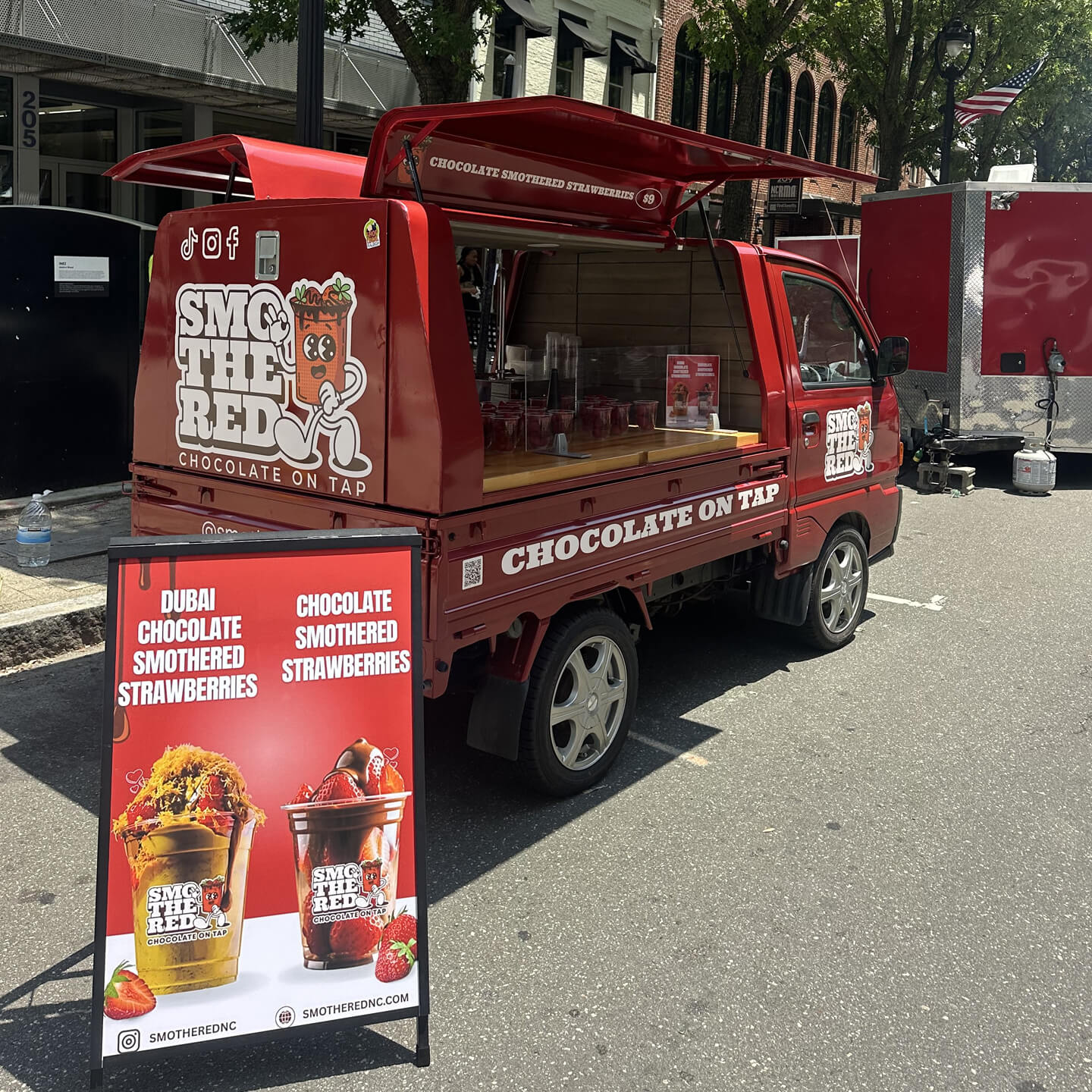 Smothered brings chocolate on tap to the Triangle from our mini truck, serving up fresh strawberries drenched in rich Belgian chocolate! –Smothered brings chocolate on tap to the Triangle from our mini truck, serving up fresh strawberries drenched in rich Belgian chocolate! –