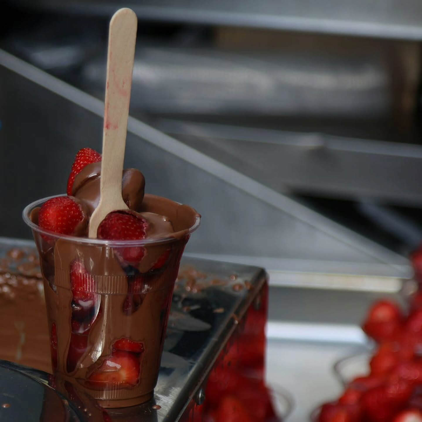 Chocolate on Tap Experience pure indulgence with chocolate on tap—a rich, velvety flow of the finest Belgian chocolate, ready to smother fresh, juicy strawberries in every decadent bite. It’s smooth, it’s indulgent, and it’s unlike anything you’ve ever tasted. Find us at our next event and treat yourself to the ultimate chocolate experience!