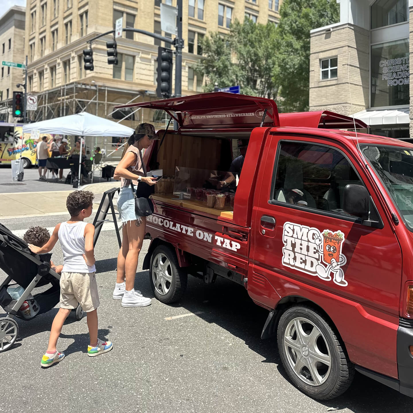 Whether you’re planning a wedding, birthday party, corporate gathering, or community festival – Smothered brings a fun, unforgettable twist to your celebration. Our charming mini truck rolls in with fresh strawberries smothered in flowing Belgian chocolate, creating a delicious experience your guests won’t stop talking about
