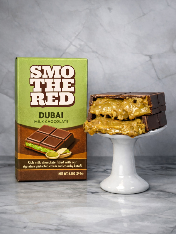 Premium chocolate stuffed with our signature pistachio cream and crunchy kataifi. This bar delivers bold chocolate flavor with a satisfying crunch for a rich, indulgent experience.